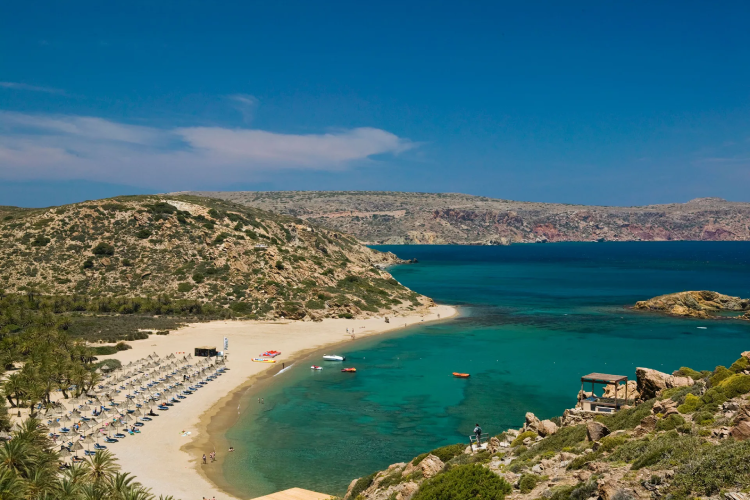 In eastern Crete’s Lasithi region lies Vaï Beach, famous for its rare palm forest and exotic beauty. It’s a dreamy setting for a destination elopement Crete couples will never forget. The contrast of emerald palms and turquoise sea gives a tropical feel, while nearby hidden coves offer privacy. Your Crete wedding planner can arrange a simple ceremony beneath the palms followed by a seaside photoshoot at sunrise or sunset.